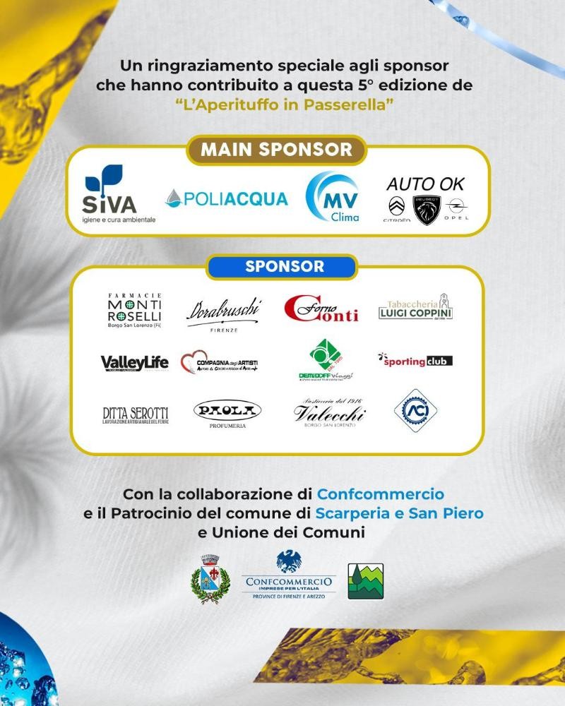L'evento è realizzato con la collaborazione di Confcommercio e il Patrocinio del comune di Scarperia e San Piero e Unione dei Comuni, e reso possibile grazie ai nostri sponsor: