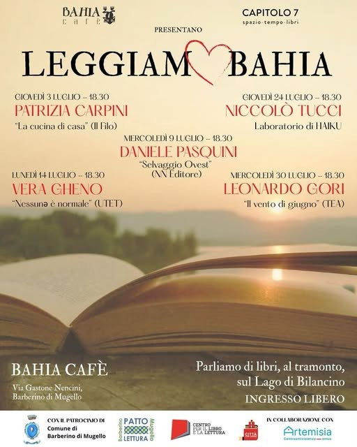 Il Bahia Cafè e Capitolo 7 spazio-tempo-libri presentano LeggiamoBahia, una rassegna estiva di incontri con autori e laboratori dedicati ai libri, al tramonto, sulle rive suggestive del Lago di Bilancino a Barberino di Mugello.