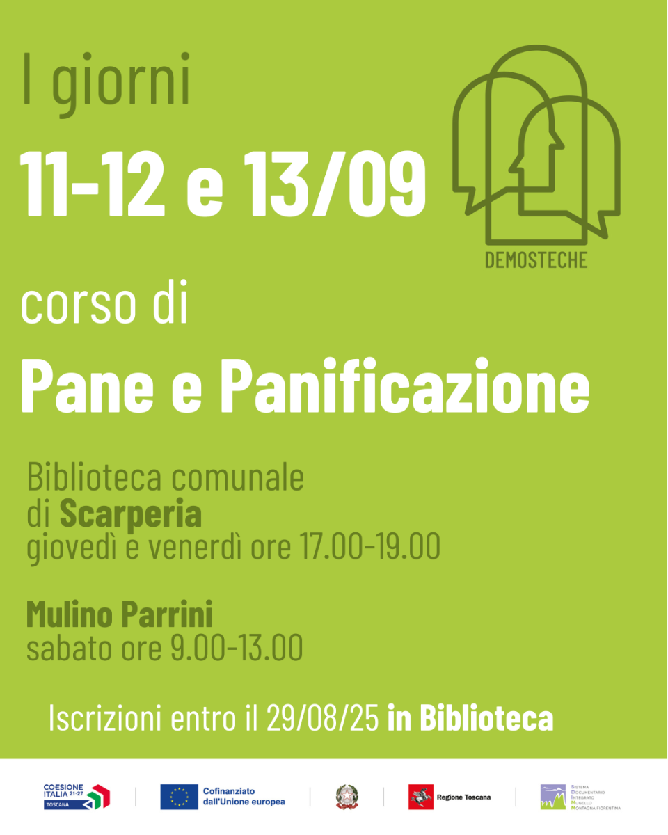 - 11 e 12 settembre dalle 17:00 alle 19:00 presso la biblioteca di Scarperia
