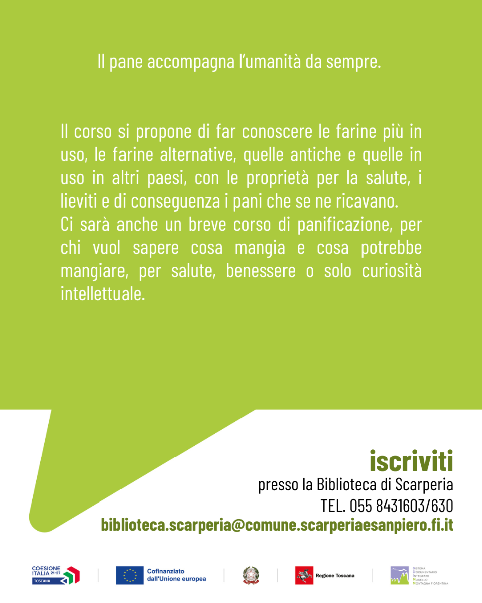Corso di pane e panificazione presso la Biblioteca comunale di Scarperia e il Mulino Parrini