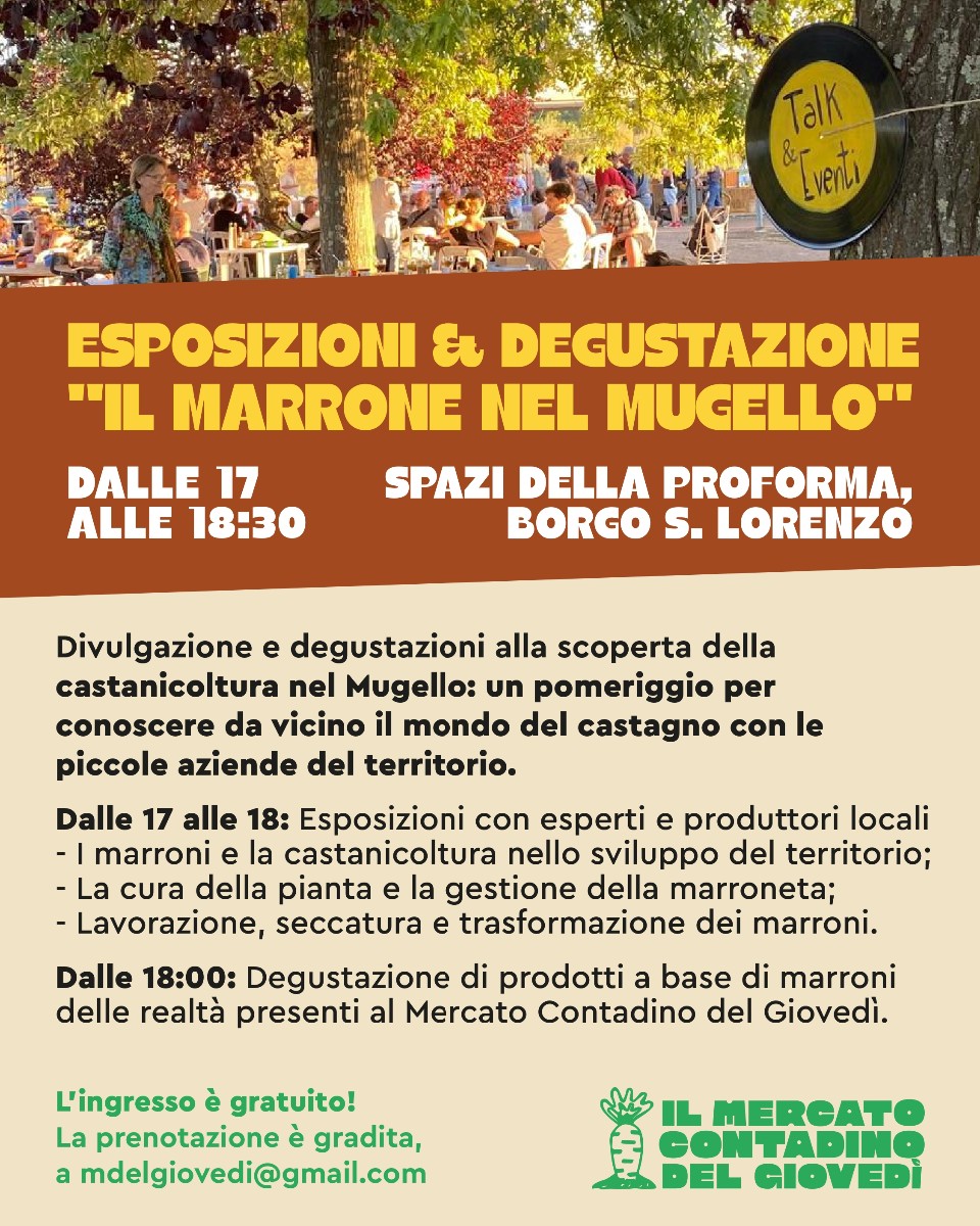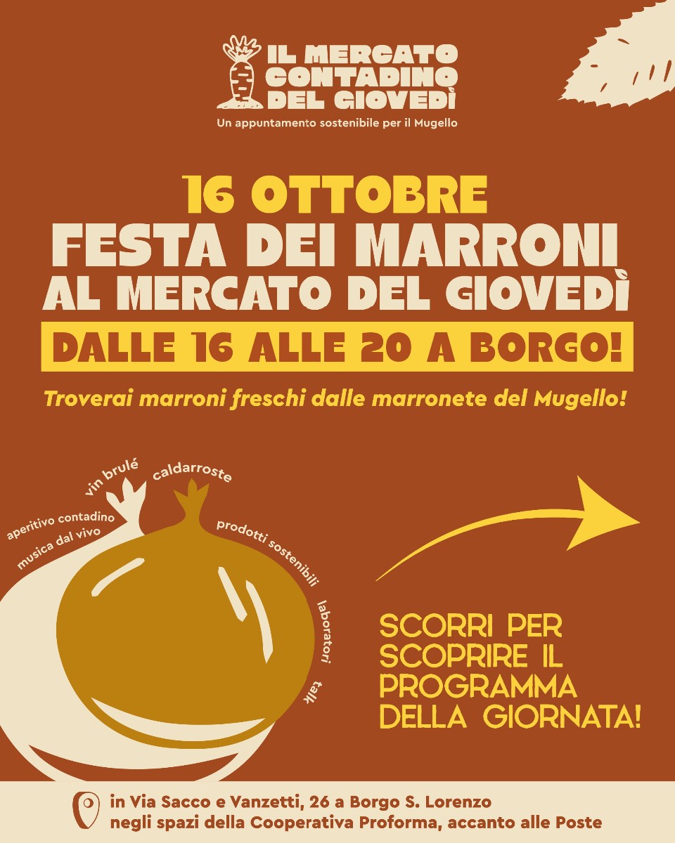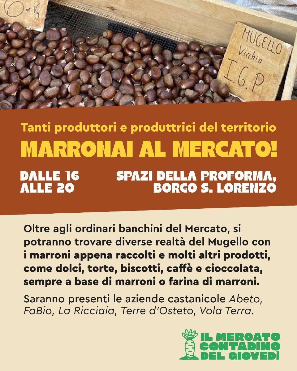 Il Mese dei Marroni al Mercato Contadino è un’occasione per celebrare l’autunno, i suoi sapori e i suoi protagonisti: le produttrici e i produttori che ogni settimana portano sulle tavole del Mugello cibo buono, sano e giusto.