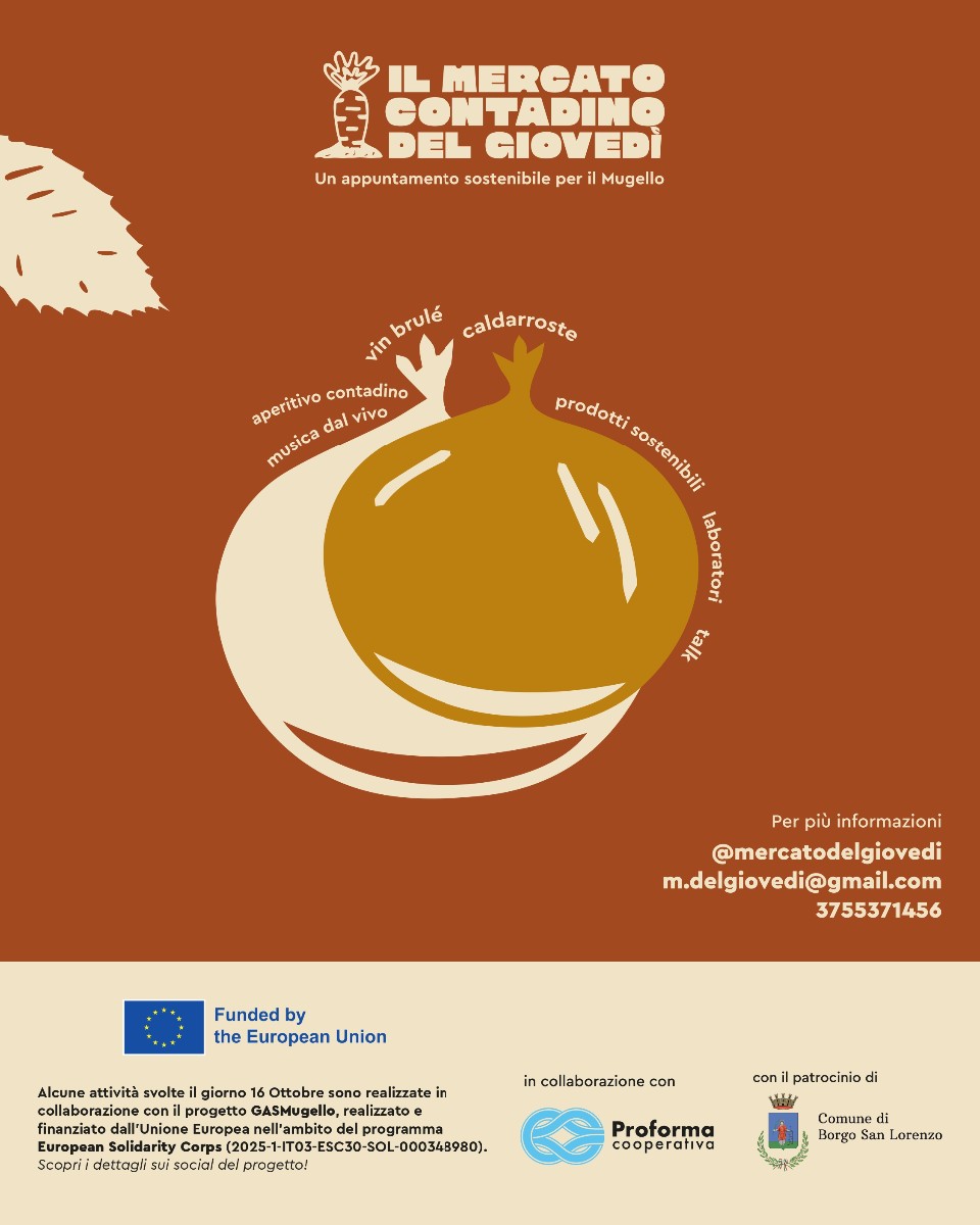 In caso di pioggia, il Mercato e le attività si svolgeranno comunque negli spazi della Cooperativa Proforma.