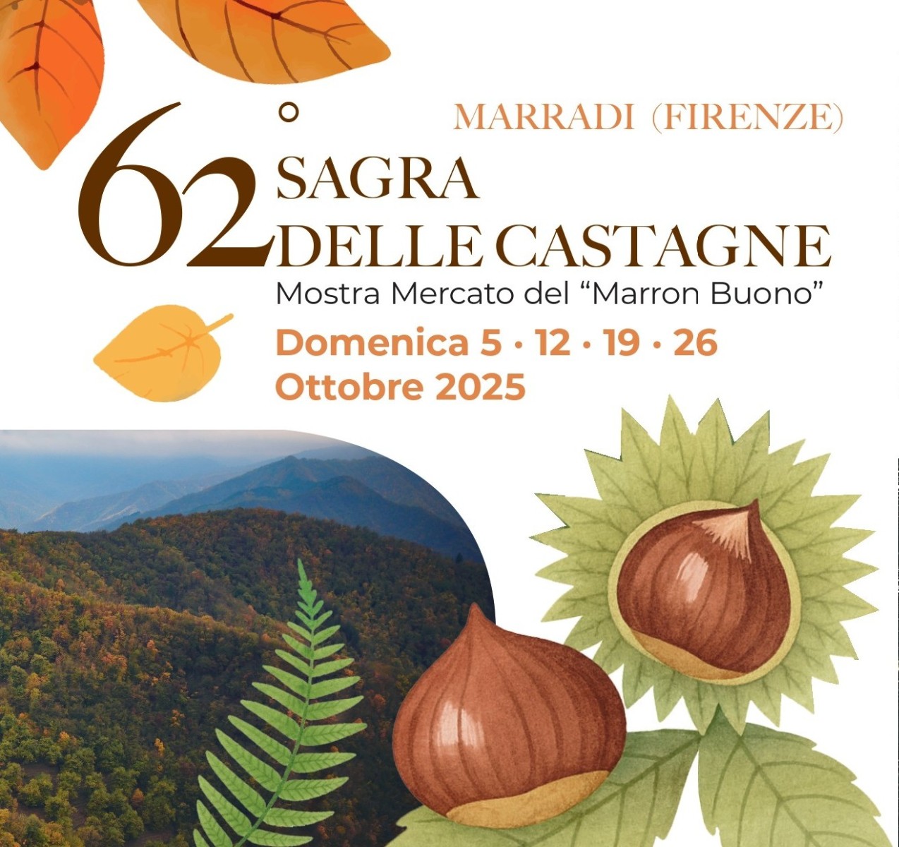 La tradizione e i sapori autentici dell’Appennino tornano protagonisti a Marradi nelle domeniche 5, 12, 19 e 26 ottobre 2025 con la Sagra delle Castagne, storico appuntamento dedicato al rinomato Marron Buono IGP del Mugello.