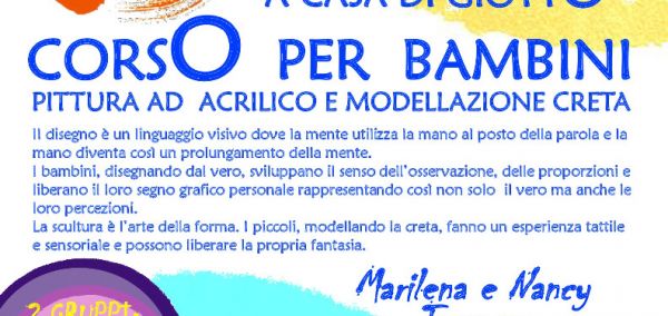 un corso di disegno dal vero, con pittura ad acrilico e modellazione creta per bambini. Ogni martedì